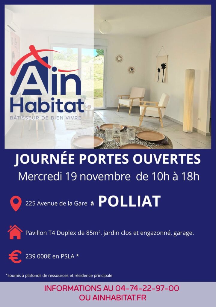 Au sein de son nouveau programme situé Avenue de la Gare à Polliat, AIN HABITAT vous invite à découvrir son dernier pavillon duplex de 85.58m², comprenant au Rez-de chaussée, un grand séjour ouvert sur cuisine communiquant avec 1 cellier, donnant accès à un jardin clos et engazonné mais aussi 1 chambre parentale avec 1 salle d’eau et WC, ainsi qu’un garage attenant. A l’étage vous y trouverez 2 chambres, une salle de bain et WC séparé, disponible à la vente en location-accession (sous conditions de ressources).